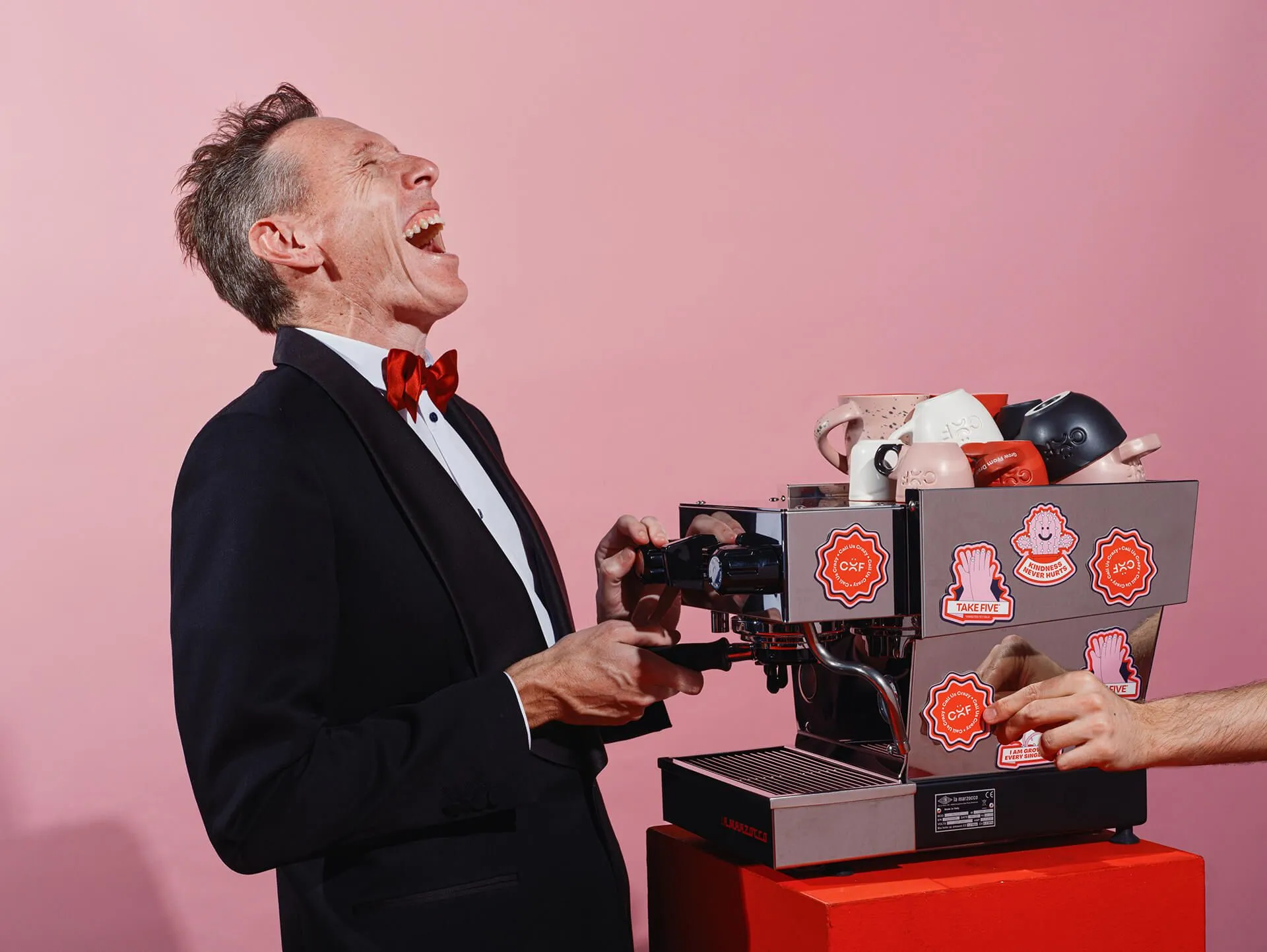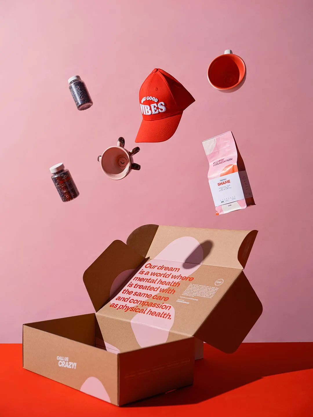 Create a bold and daring brand identity, reflecting the courage needed to tackle complex societal issues. Emphasize the transformative power of conversation over a cup of coffee to spark change and understanding. The slogan "Call Us Crazy" endeavors to build a community and reshape the notion of 'craziness' into a positive force. We embrace this label because we passionately believe in our objectives: envisioning a world where mental health receives the same level of care as physical well-being, and striving towards a future free from suicide.