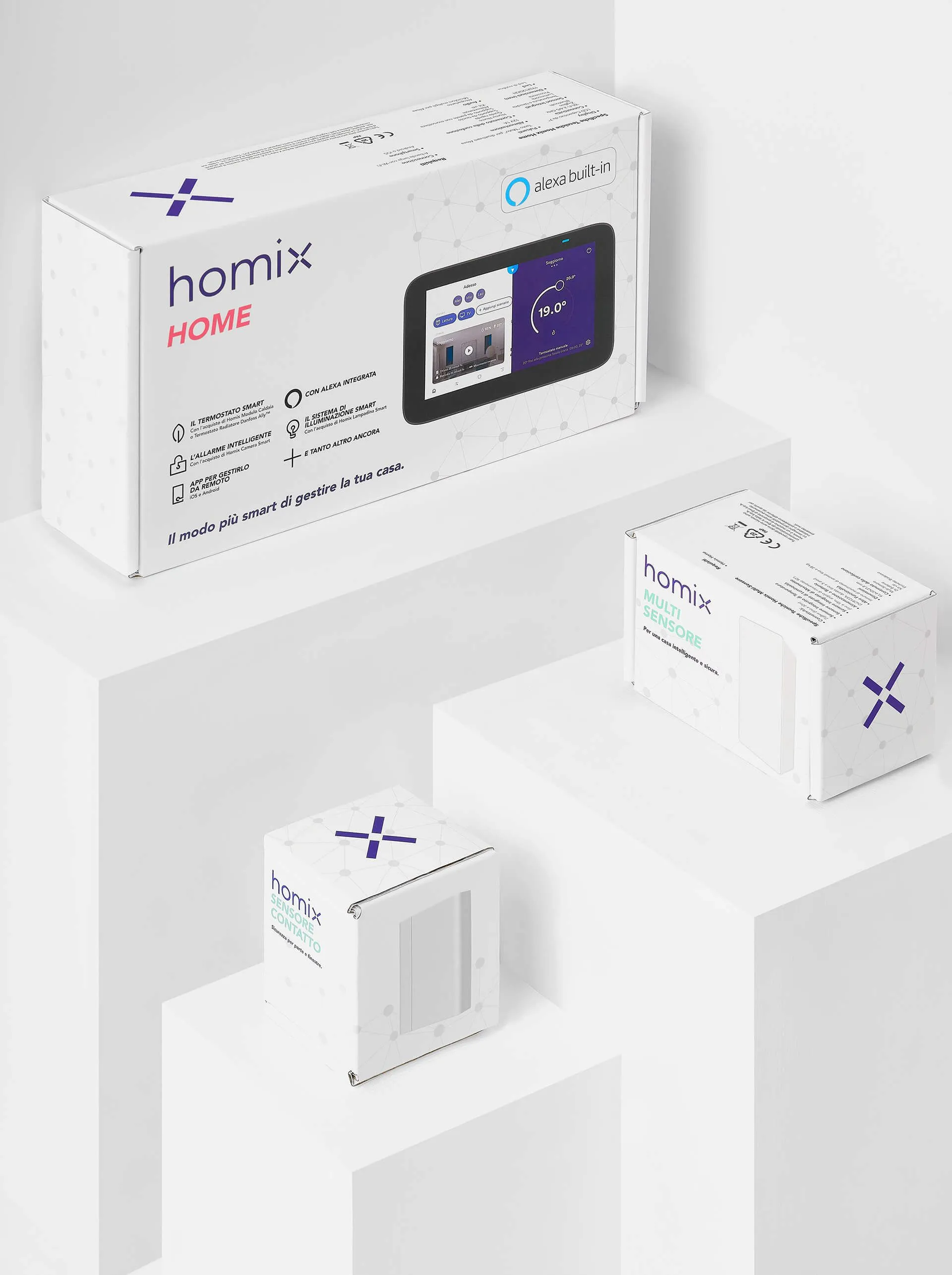 Designing the identity for Enel X’s new products. In 2019, it has launched Homix: a new smart home system in collaboration with Alexa. Homix is a single solution for the straightforward management of all the devices in the domestic ecosystem including heating, lighting and security systems.