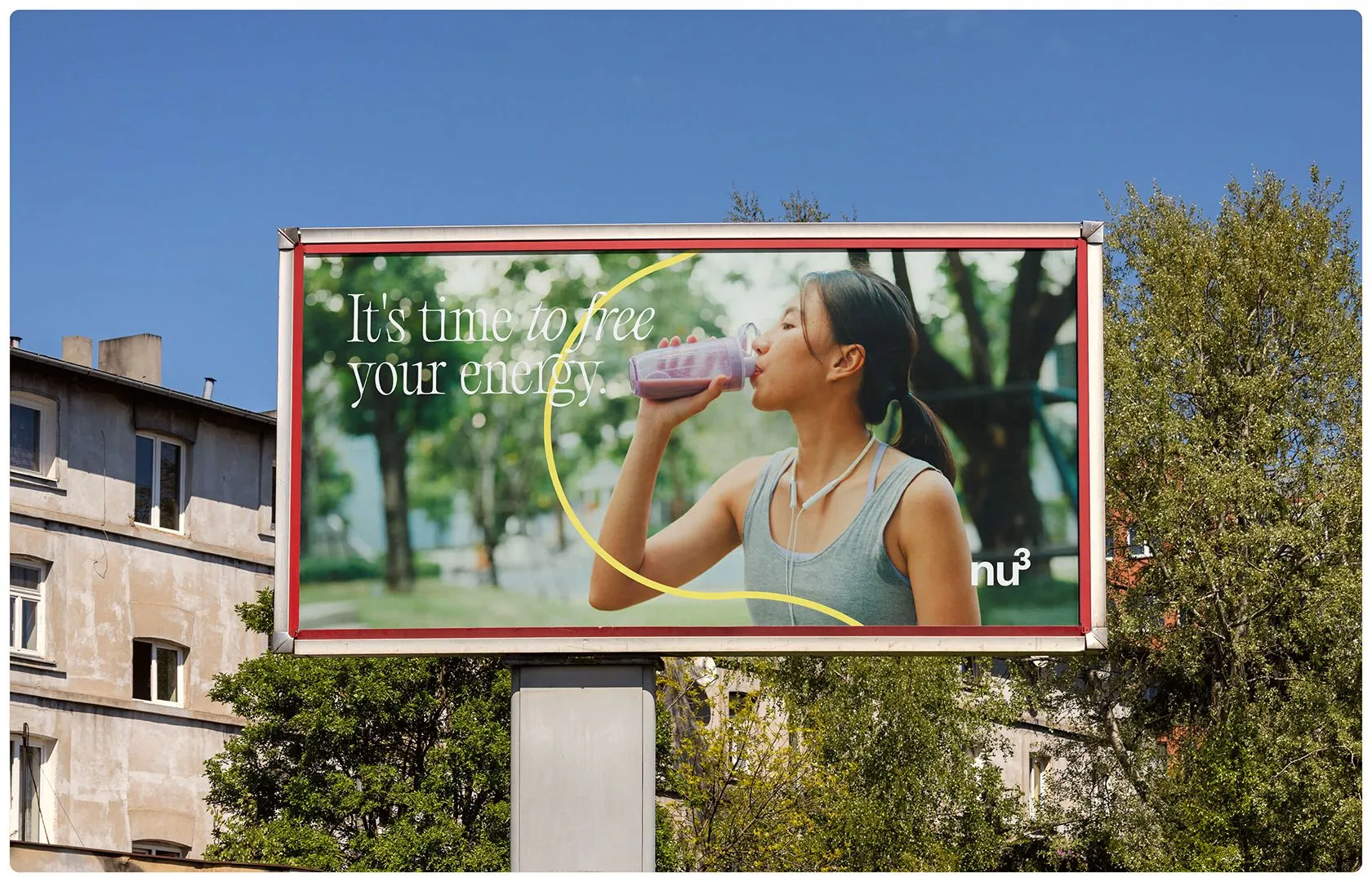 nu3, a subsidiary of Redcare®, leads in nutritional supplements, uniting sports, food, and health. To refine its identity while preserving its essence, we crafted a strategic visual language—introducing a defined TOV, a new colour system, refining typography and creating a unifying conceptual form.